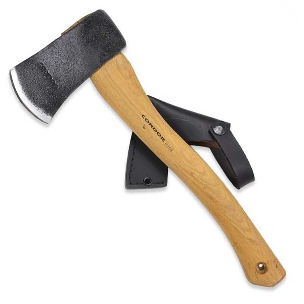 El Hacha Condor Camping es bastante versátil ya que es muy liviana y pequeña lo que permite ser llevada en la mochila sin problemas, es bastante cómoda gracias a su mango de Hickory Americano, viene con una funda de cuero hecha a mano lo que protege el hacha mientras no se use.